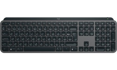 Logitech MX Keys S. Toetsenbord formaat: Volledige grootte (100%). Stijl toetsenbord: Recht. Aansluiting: RF-draadloos + Bluetooth, Toetsenbord toetsschakelaar: Schaar-toetsschakelaar, Toetsenbordindeling: AZERTY. Backlight type: LED. Aanbevolen gebruik: Universeel. Kleur van het product: Grafiet