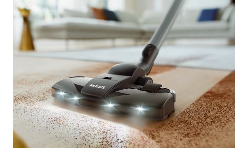 Ervaar superieure schoonmaakprestaties met een combinatie van hoge zuigkracht en ons TriActive+LED-mondstuk. Samen kunnen ze 99,9% van het fijne stof verwijderen**.