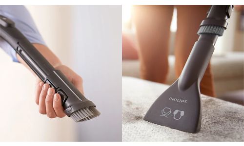 De geïntegreerde, zachte borstel is in het handvat ingebouwd, zodat deze altijd klaar is voor gebruik op meubilair, vlakke oppervlakken en bekleding. Het meubelmondstuk is ontworpen voor optimale reiniging van zachte meubels zoals kussens en banken. U kunt er zelfs huisdierenhaar mee verwijderen.