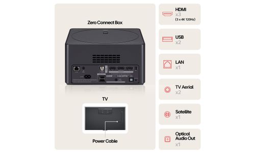 *Verbinding met stroomkabel naar zowel het tv-scherm als de Zero Connect Box vereist.