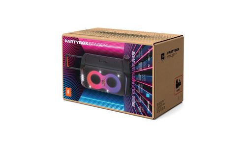 Met de JBL PartyBox Stage 320 kun je altijd en overal feesten. Maak van elke ruimte een dansvloer, binnen of buiten. Een krachtige JBL Pro Sound en een pompende bas laten iedereen dansen, terwijl zij genieten van een adaptieve lichtshow, lichtsporen en stroboscoopeffecten, die reageren op de beat van de muziek. Gebruik de microfoon- en gitaaringangen om te laten wat je kunt. Je kunt de hele nacht feesten met leuke interactieve effecten. Dankzij de stevige telescopische handgreep en brede, stevige wielen kun je de JBL PartyBox Stage 320 vrijwel overal mee naartoe nemen. Het spatwaterdichte ontwerp zorgt ervoor dat hij bestand is tegen een beetje regen. Het beste van alles is dat hij tot 18 uur afspeeltijd biedt. En als langer wilt doorgaan, wissel je gewoon de vervangbare batterij. Voor een nog groter feest maak je eenvoudig verbinding of gebruik je de JBL PartyBox-app om meerdere JBL Auracast-luidsprekers draadloos te verbinden. Breng mensen samen voor een ongekend feest met de JBL PartyBox Stage 320.