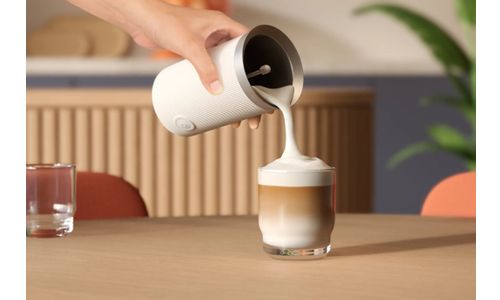 Schuimt melk perfect op. Werkt zowel warm als koud, met koemelk én plantaardige melk.