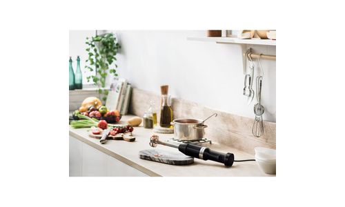 Deze stijlvolle staafmixer kan zonder zorgen in je pannen worden gebruikt terwijl je vrijelijk beweegt zonder onhandig snoer.