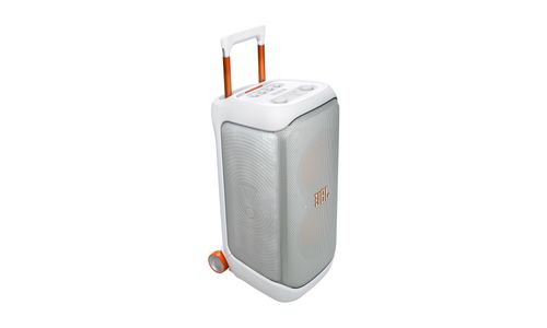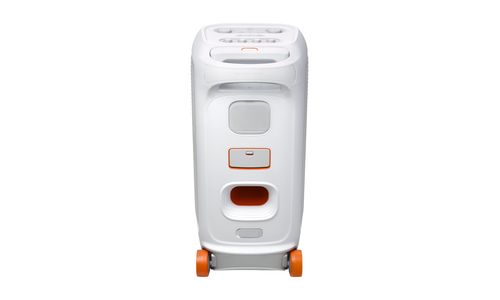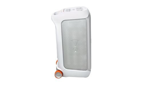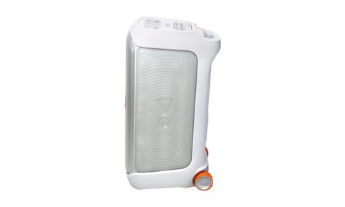 Met de JBL PartyBox Stage 320 kun je altijd en overal feesten. Maak van elke ruimte een dansvloer, binnen of buiten. Een krachtige JBL Pro Sound en een pompende bas laten iedereen dansen, terwijl zij genieten van een adaptieve lichtshow, lichtsporen en stroboscoopeffecten, die reageren op de beat van de muziek. Gebruik de microfoon- en gitaaringangen om te laten wat je kunt. Je kunt de hele nacht feesten met leuke interactieve effecten. Dankzij de stevige telescopische handgreep en brede, stevige wielen kun je de JBL PartyBox Stage 320 vrijwel overal mee naartoe nemen. Het spatwaterdichte ontwerp zorgt ervoor dat hij bestand is tegen een beetje regen. Het beste van alles is dat hij tot 18 uur afspeeltijd biedt. En als langer wilt doorgaan, wissel je gewoon de vervangbare batterij. Voor een nog groter feest maak je eenvoudig verbinding of gebruik je de JBL PartyBox-app om meerdere JBL Auracast-luidsprekers draadloos te verbinden. Breng mensen samen voor een ongekend feest met de JBL PartyBox Stage 320.