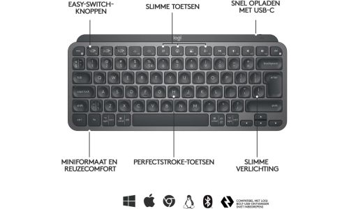 MX Keys Mini Minimalistisch, draadloos, verlicht toetsenbord Graphite