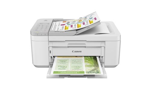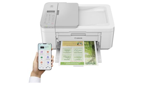 De Canon PIXMA TR4756i print, scant¹, kopieert en faxt moeiteloos; het is de perfecte thuisprinter. Je stelt hem snel in via de smartphone-app. Bedien deze All-in-One vanaf slimme apparaten dankzij Wi-Fi-connectiviteit en de Canon PRINT-app. Zonder app printen met Mopria en Apple AirPrint is ook ingebouwd. Zwarte pigmentinkt en dye-kleureninkt leveren scherpe tekst, levendige beelden en hoogwaardige prints met ondersteuning voor diverse media. Gebruiksvriendelijke functies omvatten eenvoudig te vervangen inktcartridges, verbeterde papierplaatsing, automatisch dubbelzijdig printen en een ADF voor 20 vel² voor het kopiëren en scannen van documenten met meerdere pagina's. Dankzij een herinnering voor het verwijderen van papier vergeet je nooit gekopieerde of gescande documenten. De printer is compatibel met PIXMA Print Plan, een maandabonnement voor inkt op basis van geprinte pagina's.