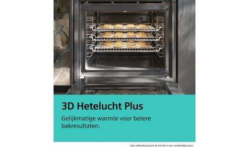Krijg elke keer weer de gewenste bakresultaten met 3D Hetelucht Plus. Of u nu één, twee of drie niveaus gebruikt, de warmte wordt gelijkmatig verdeeld om bakken nog leuker te maken. Bak cake of koekjes op maximaal drie niveaus tegelijk en geniet elke keer opnieuw van een uitstekend resultaat