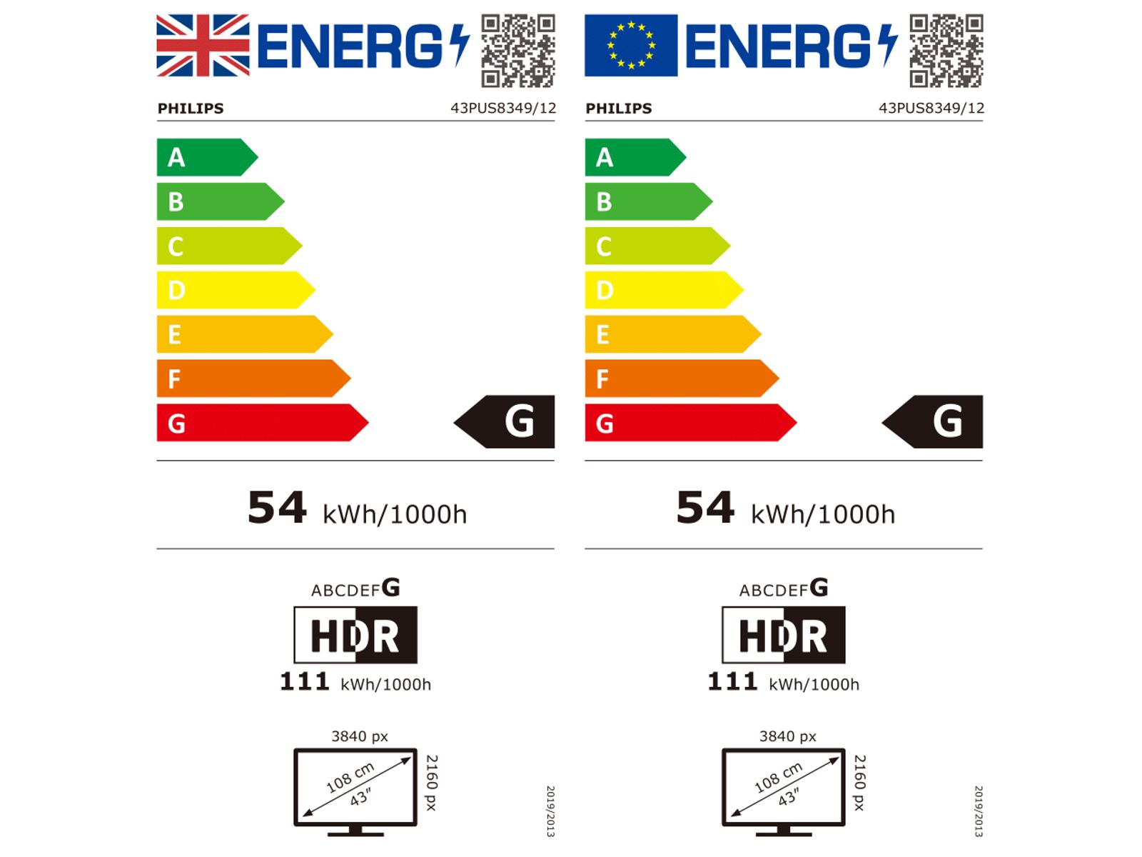 | Energieverbruik in HDR-modus per 1000u: | 179 kWh |