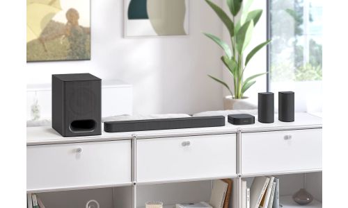 1000 W1 aan pure kracht. Soundbar, subwoofer en achterspeakers werken harmonieus samen voor een krachtige bas, prachtige hoge tonen en een energieke, meeslepende geluidservaring die pure emotie oproept.