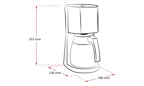 - Scharnierende filterhouder en glazen kan zijn vaatwasmachinebestendig