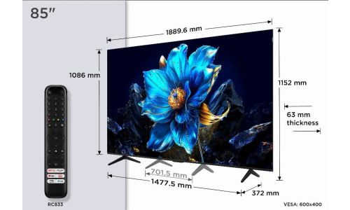 TCL 85P7K 85” QLED, Direct LED TV, 4K HDR TV, Smart TV Powered by Google TV (Dolby Vision & Atmos, Motion Clarity, Onkyo 2.1 geluid, Hands-Free Voice Control, compatibel met Google Assistant & Alexa)