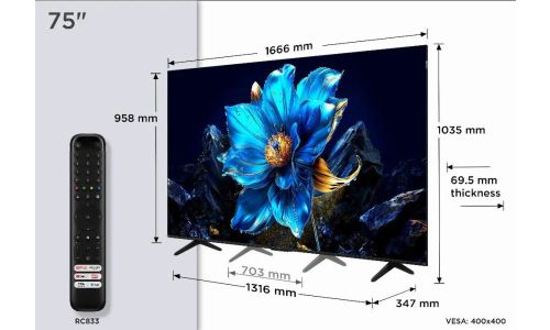 TCL 75P7K 75” QLED, Direct LED TV, 4K HDR TV, Smart TV Powered by Google TV (Dolby Vision & Atmos, Motion Clarity, Hands-Free Voice Control, compatibel met Google Assistant & Alexa)
