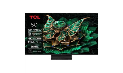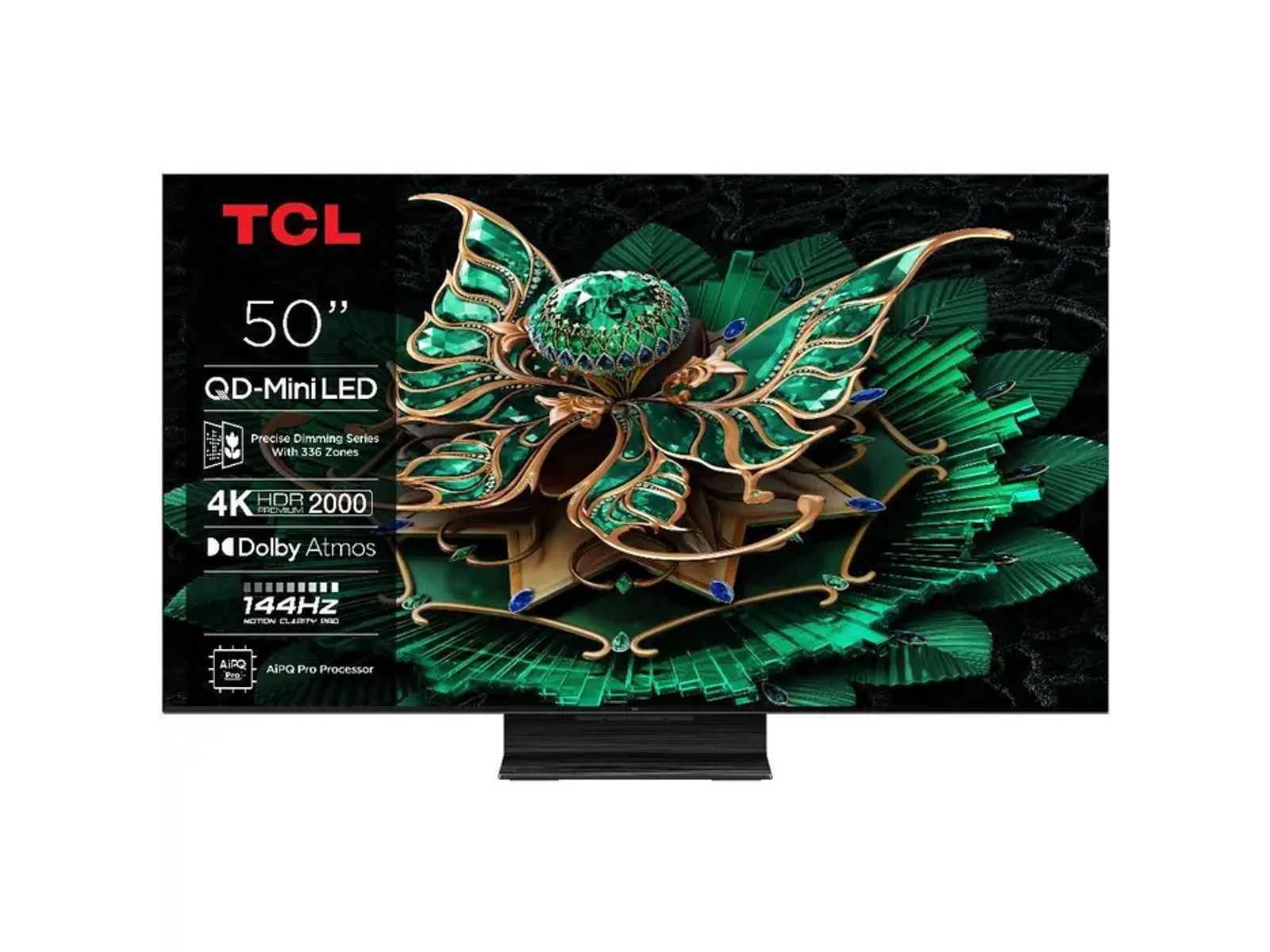 TCL 50C7K 50” QD-Mini LED TV – 4K HDR Premium 2000, Smart TV aangedreven door Google TV (Dolby Vision IQ & Atmos, HVA-paneel, 144Hz Motion Clarity Pro, Game Master, Handsfree spraakbesturing, Apple AirPlay 2 & Alexa)