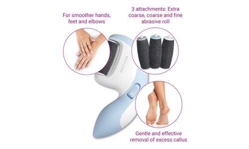 Gladde voeten, handen en ellebogen zijn opvallend en complementeren een aantrekkelijk uiterlijk. Dankzij de CR 870 elektrische eeltverwijderaar van medisana kan overtollig eelt nu in een handomdraai zacht en effectief worden verwijderd - voor perfecte verzorgingsresultaten met een merkbaar zachtere en bijzonder soepele huid.