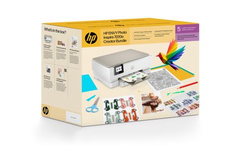 HP Creator box - ENVY 7220e A4 inkjet printer 15 ppm Wifi + fotopapier + sticker papier + 5 maanden gratis printen + onbeperkte toegang tot Printables. Printtechnologie: Thermische inkjet, Printen: Afdrukken in kleur, Maximale resolutie: 4800 x 1200 DPI, Printsnelheid (kleur, standaard, A4/US Letter): 10 ppm. Kopiëren: Kopiëren in kleur, Maximale kopieerresolutie: 600 x 600 DPI. Scannen: Scannen in kleur, Optische scanresolutie: 1200 x 1200 DPI. Duplex functies: Printen. Maximale ISO A-series papierformaat: A4. Wifi. Direct printen. Kleur van het product: Beige